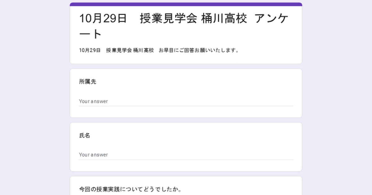 10月29日 授業見学会 桶川高校 お早目にご回答お願いいたします。